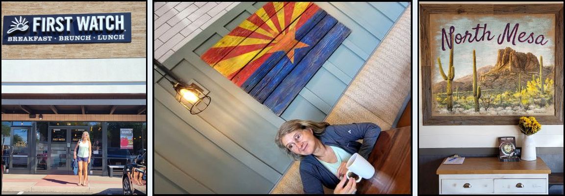 Wir fahren in die Superstition Mountains und frühstücken unterwegs bei First Watch in Nord Mesa.