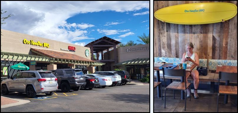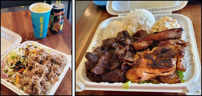 Dort halten wir am kleinen Hawaiian Ono BBQ Restaurant am Flughafen.