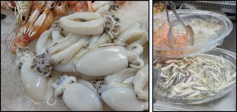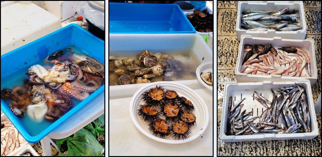 So richtig appetitlich sehen die rohen Tintenfische und Seeigel nicht aus.