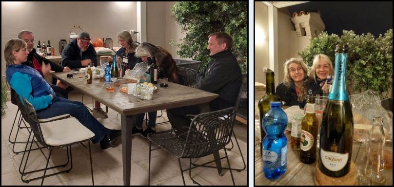 Bei Bier, Wein, Schinken, Käse, Fisch und Austern(!) sitzen wir wieder bis nach Mitternacht.