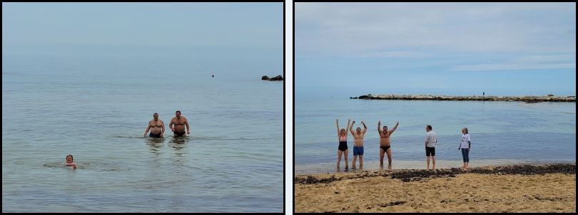 Natürlich lass ich es mir nicht nehmen, in der Adria zu schwimmen, Familie Klein begleitet mich.