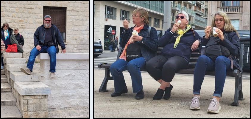 Hinterm Theater Petruzzelli finden wir einen sonnigen, windgeschützten Platz zum Draußen sitzen.