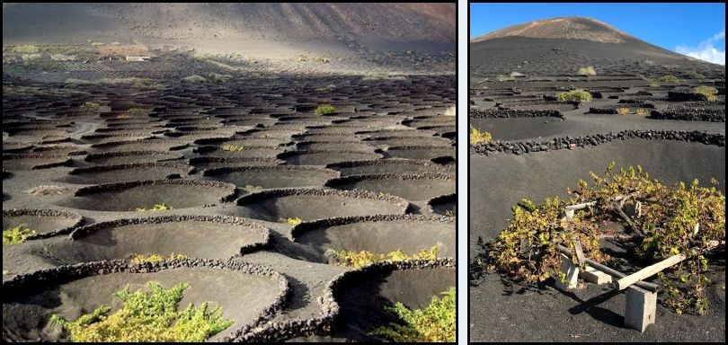 Auf pechschwarzen Lavaböden wachsen unzählige Weinreben.