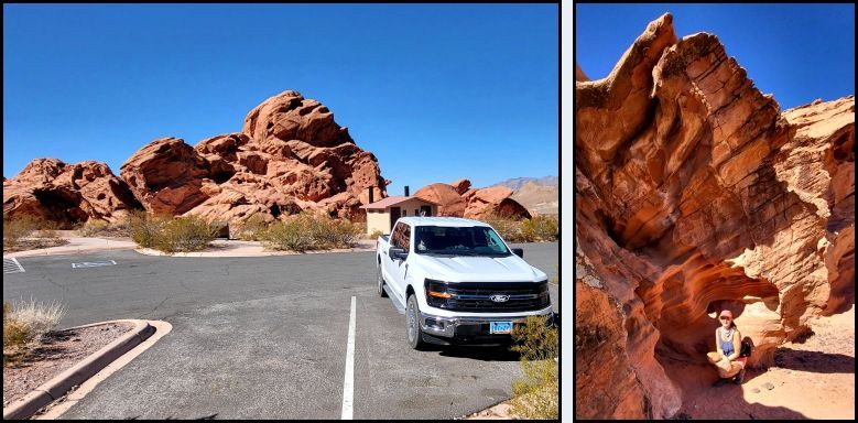 An der Redstone Picnic Area legen wir eine Pause ein und klettern in den Red Rocks umher.