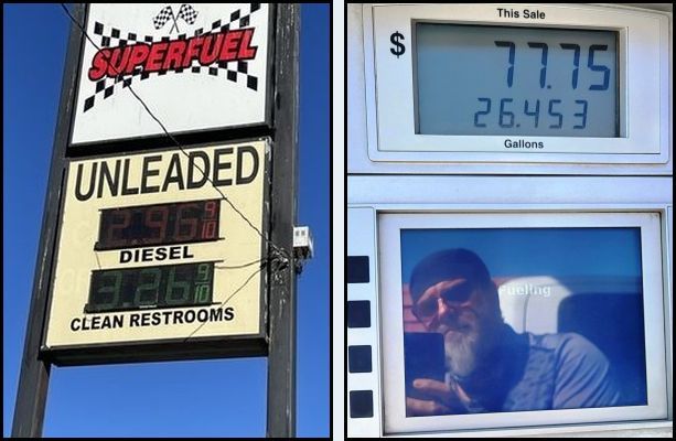 77 Dollar für 26,5 Gallonen, das sind 69 Euro für 100 Liter Regular, preiswert.