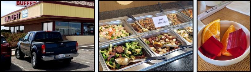 Hinter der Autobahnbrücke haben wir uns gestern online ein kleines China Büfett zum Lunch ausgesucht.