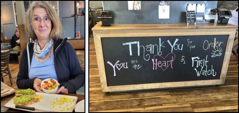 Halb neun Check Out, war sehr gut. Zum Frühstück ein letztes Mal First Watch.
