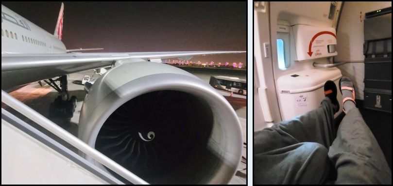 Wir sitzen wieder auf den Notausgangsplätzen, dieses Mal in Reihe 27.