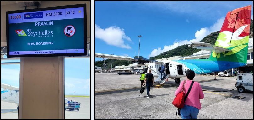 Am Domestic Terminal von Air Seychelles können wir auf einen früheren Inselflug umbuchen.