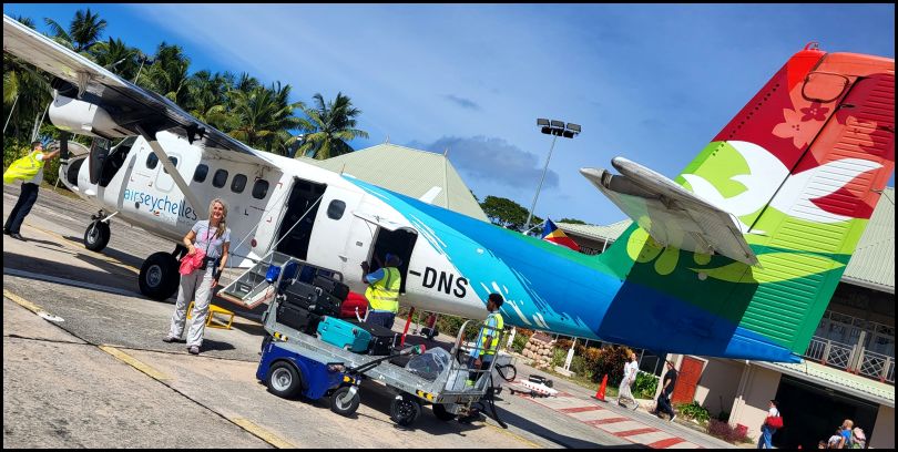 Halb elf haben wir den superkleinen Ankunfts-Terminal am Praslin Airport schon wieder verlassen.