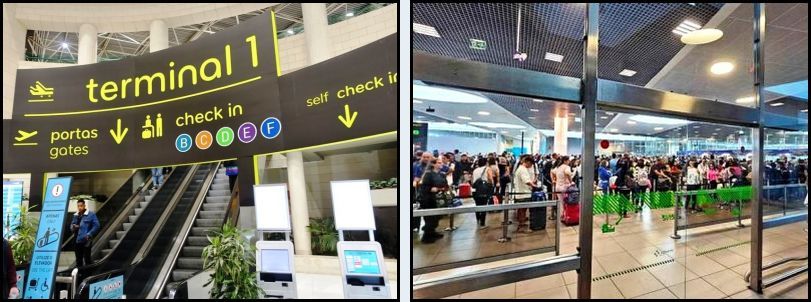 Nur mit Handgepäck bestückt, geht’s gleich durch zur Sicherheitskontrolle.