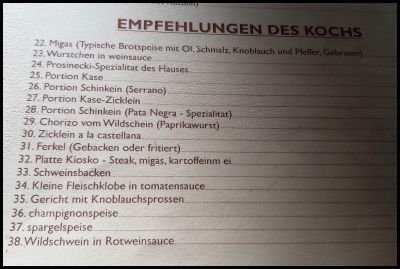 Vorher gibt es andalusische Gemüsesuppe und regionale Knoblauchsuppe.