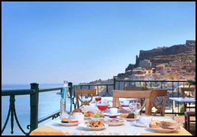 Das Essensangebot ist reichhaltig und in der Morgensonne mit Panoramablick schmeckt es noch besser.
