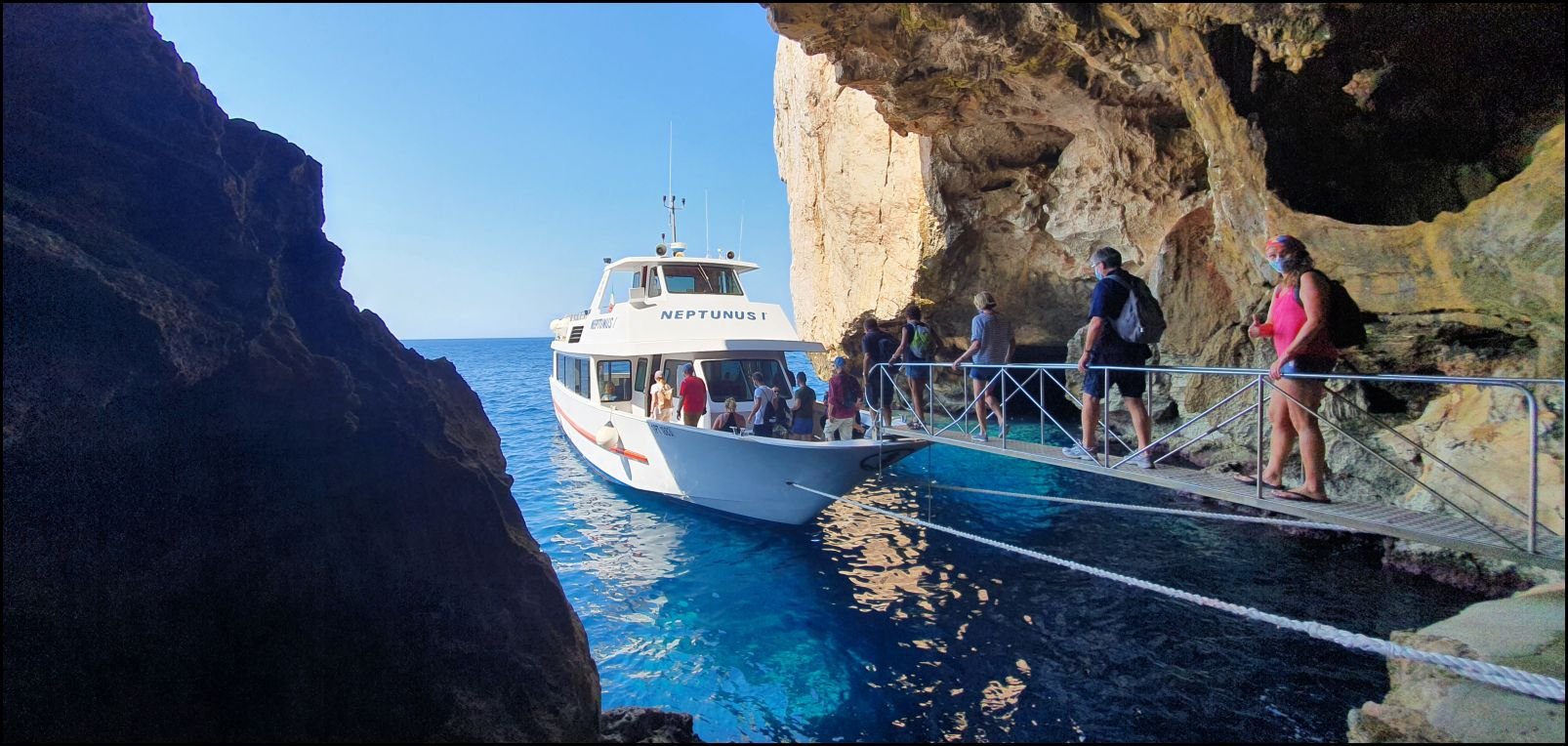 Als wir das Kap umrundet haben, legen wir am Eingang der Neptun-Grotte an.