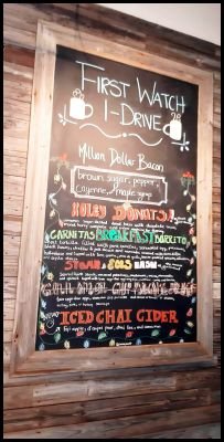 Wir frühstücken heute bei First Watch, etwa 5 min Fahrt.