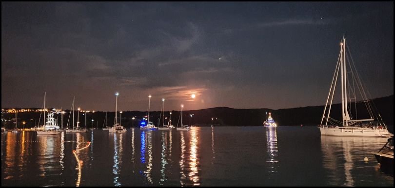 und laufen in der untergehenden Sonne in unserem heutigen Übernachtungshafen Primosten ein.