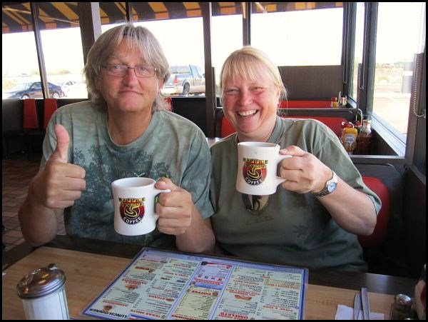 Breakfast zu viert im Waffle House, mal was anderes und durchaus zu empfehlen.