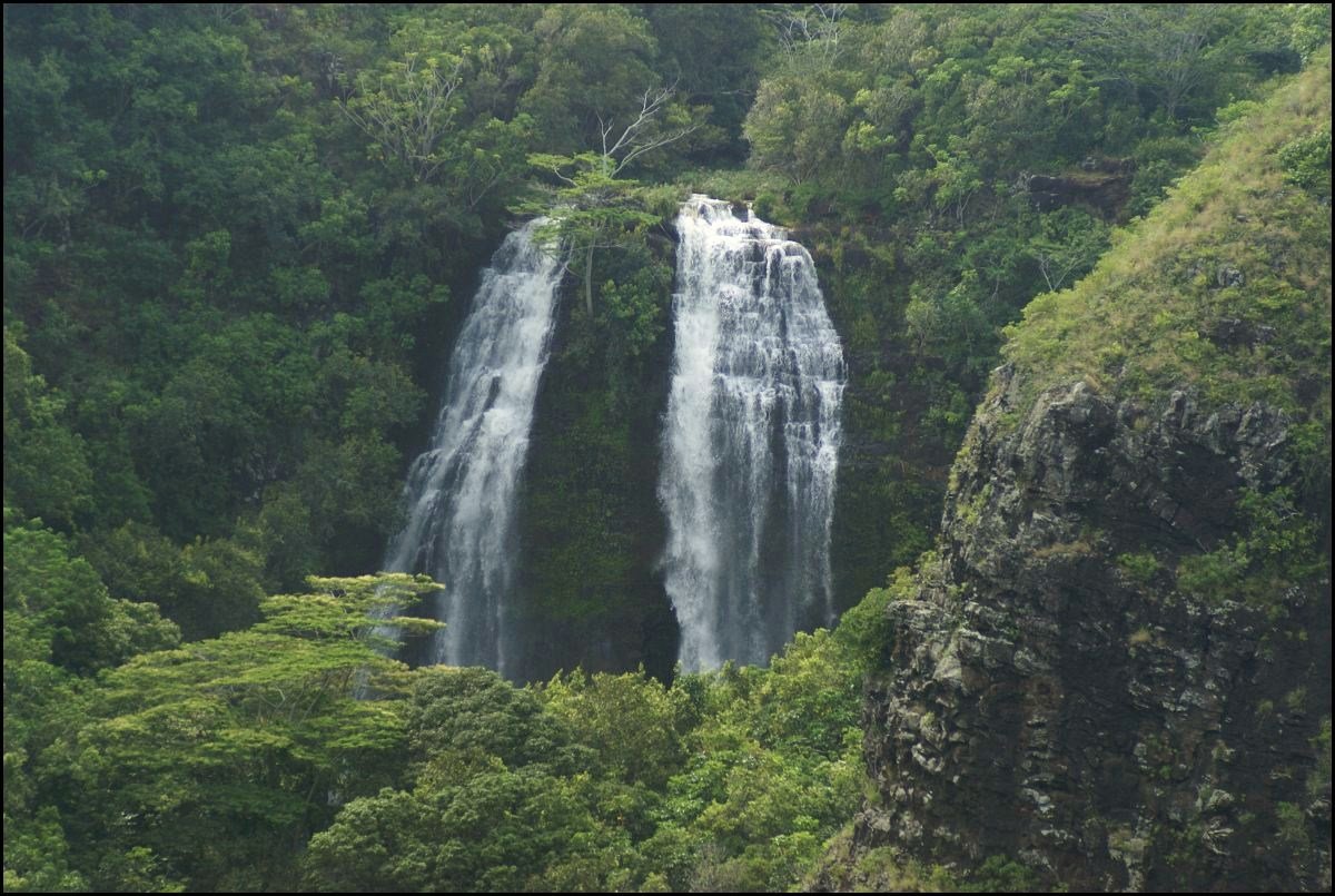 Beim Wailua River schauen wir uns noch die Opeaka Falls an und werfen einen Blick ins Tal des Flusses.